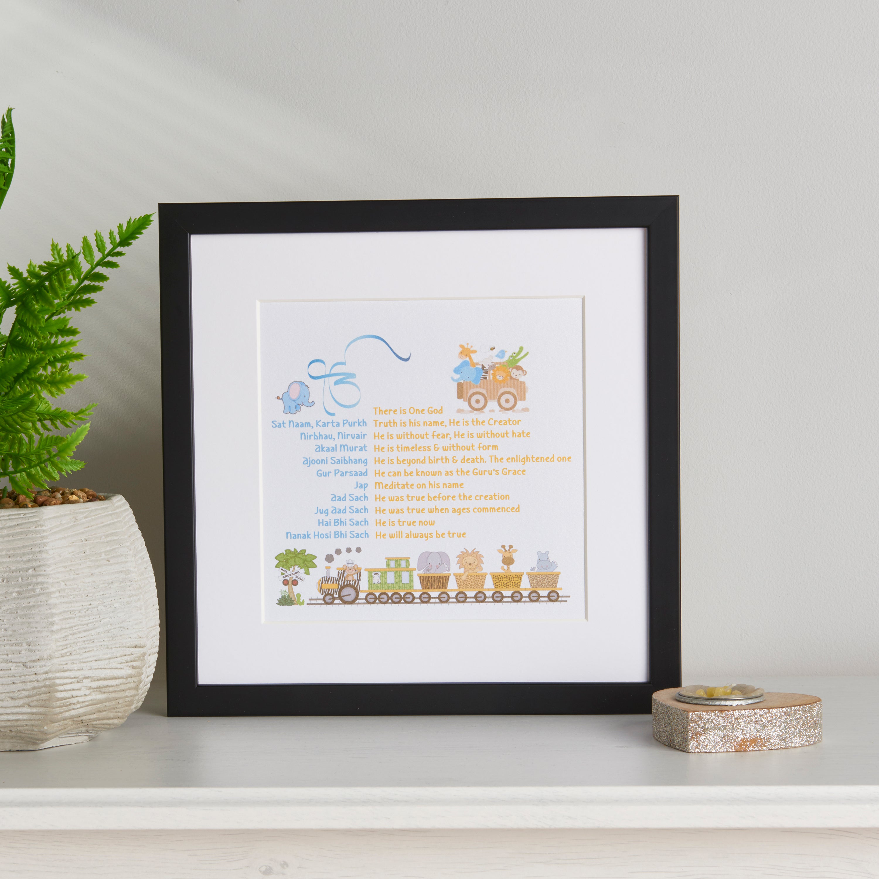 A special frame featuring the Mool Mantar, personalised just for your little one. A meaningful and beautiful way to introduce children to Sikh teachings and values.