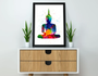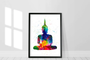 Buddha Watercolour Print or Framed - Black A4 21x30cm