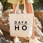 Dafa Ho Tote Bag, with large handles so you can carry it over the shoulder comfortably, suitable for a range of uses i.e. everyday shopping essentials.