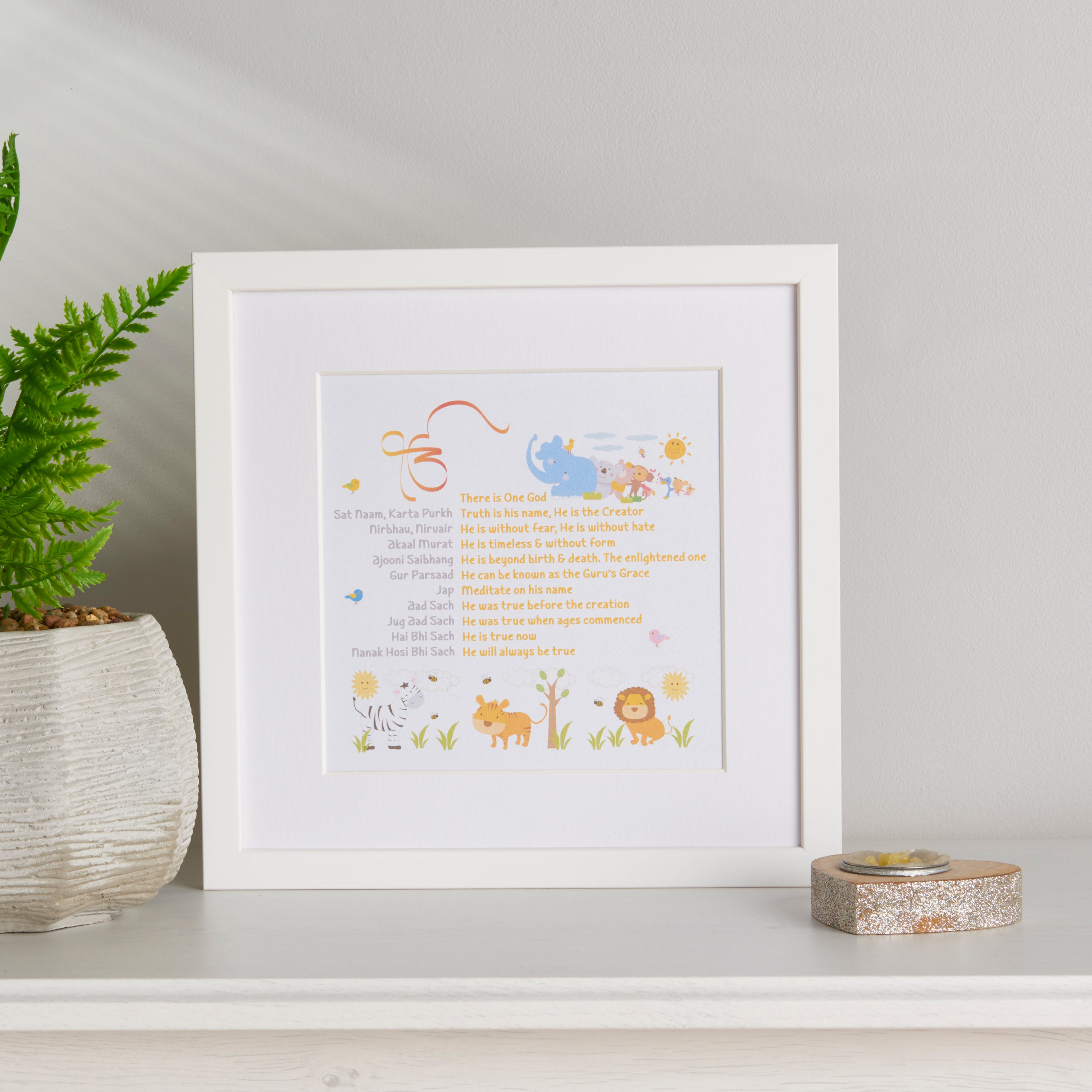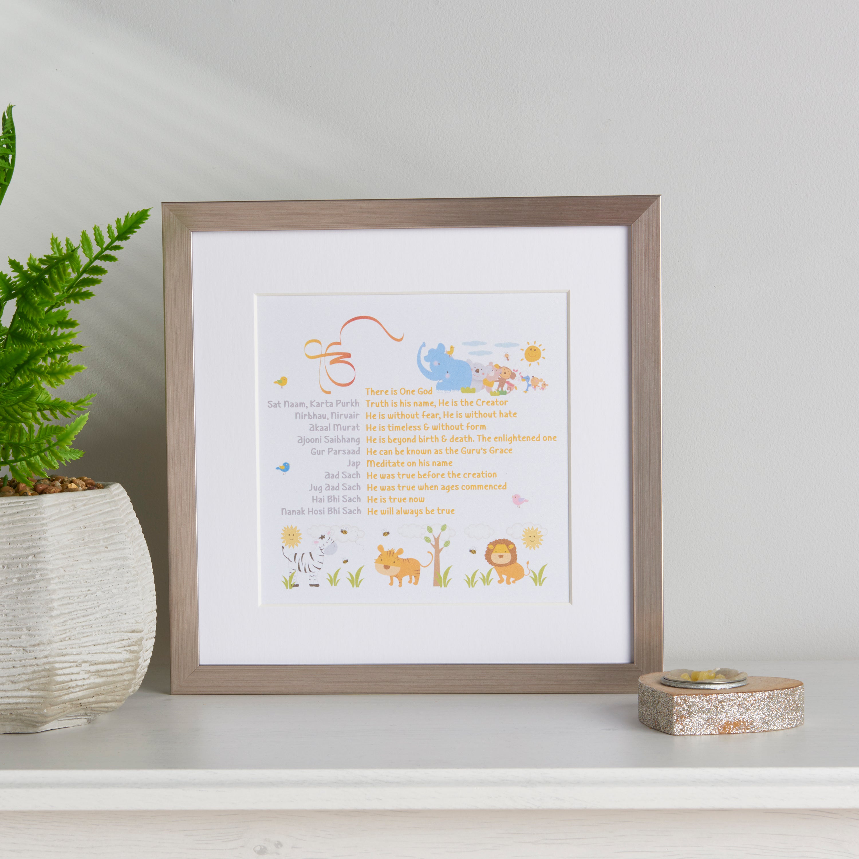 A special frame featuring the Mool Mantar, personalised just for your little one. A meaningful and beautiful way to introduce children to Sikh teachings and values.