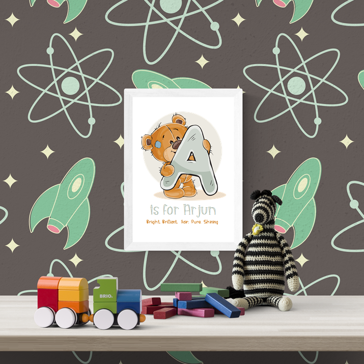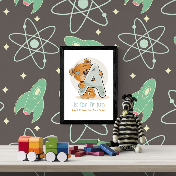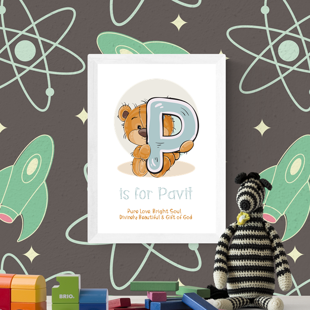 A fun and thoughtful frame featuring your child’s initial and full name – personalised just for them. Perfect for nurseries, bedrooms, or as a special gift to celebrate a little one’s unique identity.